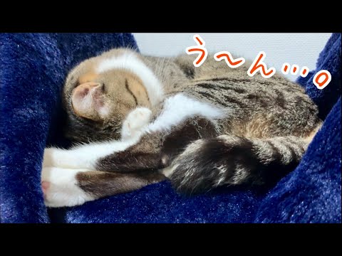 すずめ と うなぎ の "ほのぼの日記" 最近お気に入りの牛乳パックで作ったベッドで寝ていたすずめくん。 少し眩しかったのか、おててで顔を隠して寝ていました。 そんなすずめを見た飼い主は…。 #猫...